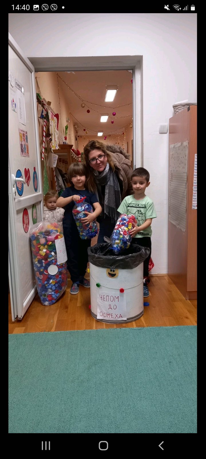 „Здрава планета – срећно дете“ (васпитачице Милојка Голубовић и Маца Граовац), на којој су израђивани новогодишњи украси од рециклажних материјала за јелку у холу вртића.